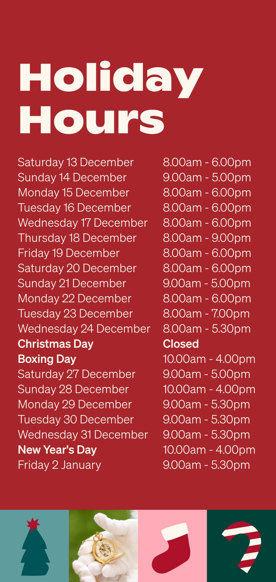 This festive season, we’re giving you the gift of time. With extended trading hours at Gordon Centre & Village, you can shop at your own pace.